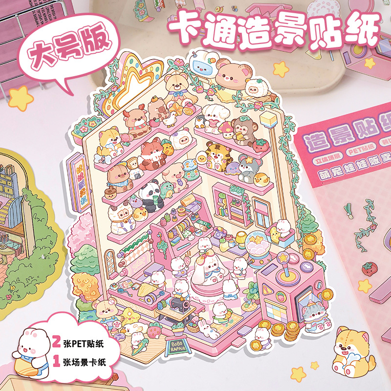 38.0艺蓝造景贴纸可爱3D立体微缩场景拼贴大号叠堆手帐解压贴画