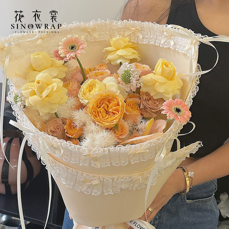 花衣裳可爱萝莉鲜花包装纸蕾丝蝴蝶结花边发泡棉七夕情人节包装纸