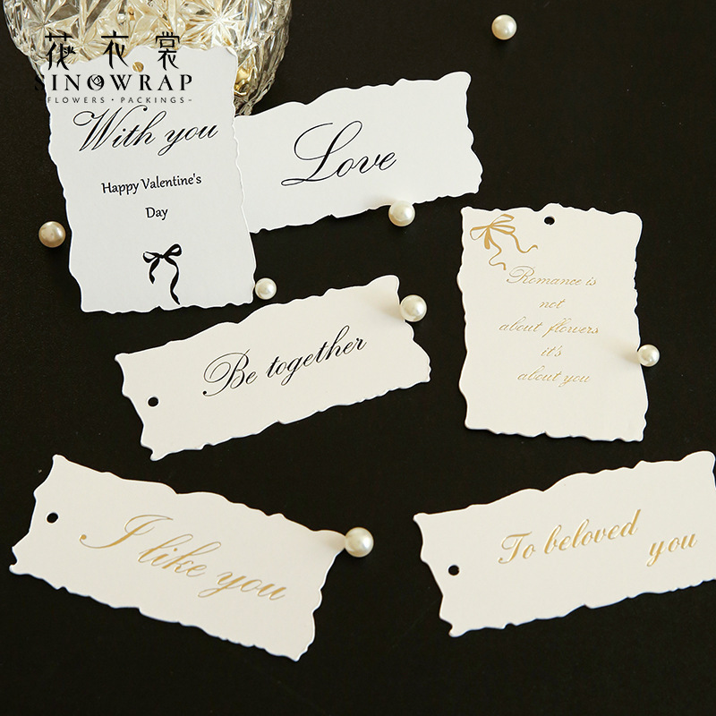 花衣裳加厚法式撕边卡鲜花花束装饰烫金不规则卡片礼物礼品留言卡