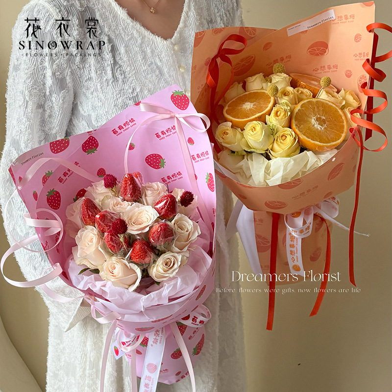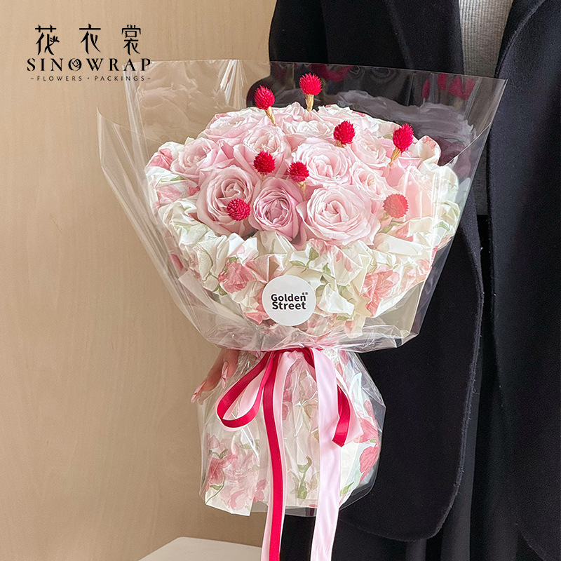 花衣裳母亲节鲜花包装纸欧雅防水花束包装材料桃花印花纸花店批发