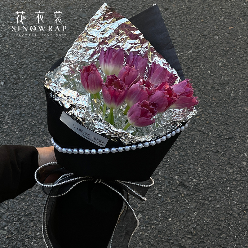 花衣裳 情人节新款珍珠围边丝绒包装纸防水鲜花花束包装手工DIY花