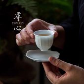 景德镇窑影青雕刻茶杯品茗杯陶瓷个人专用主人杯聚香杯家用品茗杯