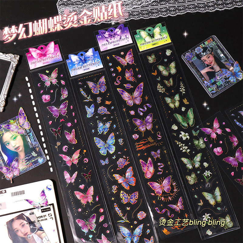艺蓝跨境蝴蝶贴纸复古长条手账贴纸创意烫金贴纸DIY咕卡装饰贴画