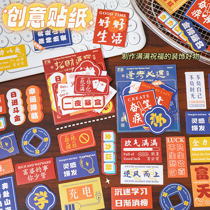 创意新年贴纸励志文字粘贴DIY手帐贴纸春节喜庆祝福文字贴纸包
