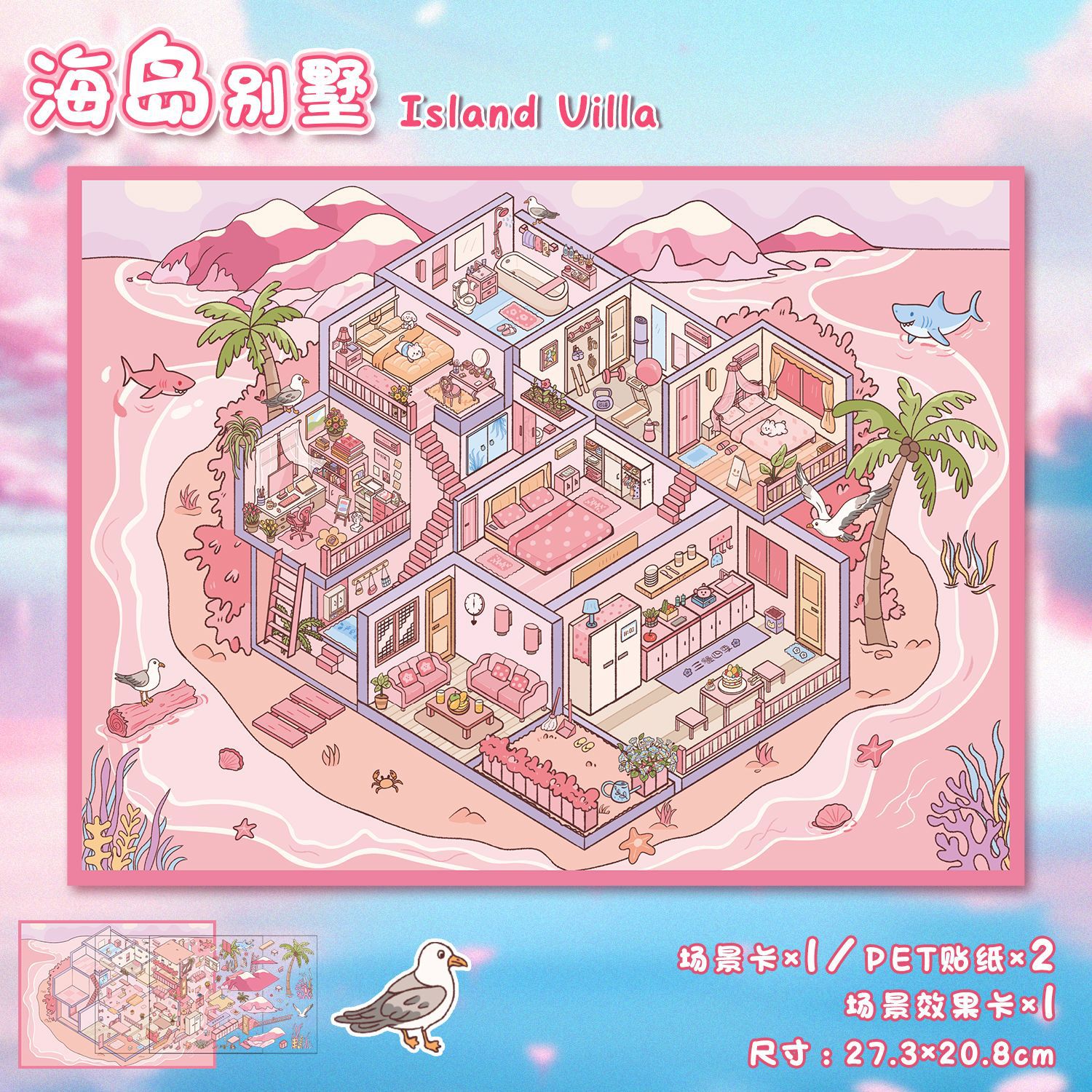 77.0艺蓝造景贴纸可爱风大号场景贴纸3D立体小屋贴纸diy解压手帐