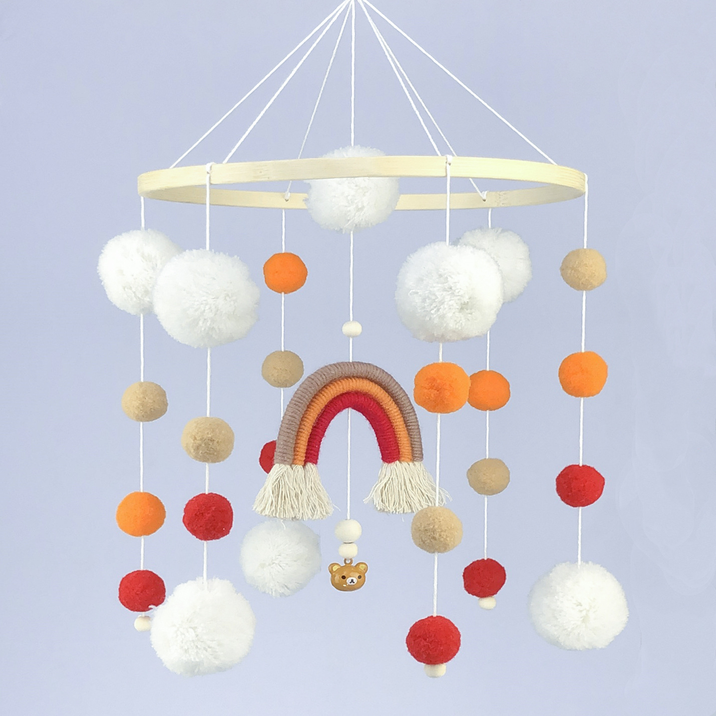 ins北欧风新款婴儿床铃儿童移动手机毛球流苏木珠床铃儿童房装饰