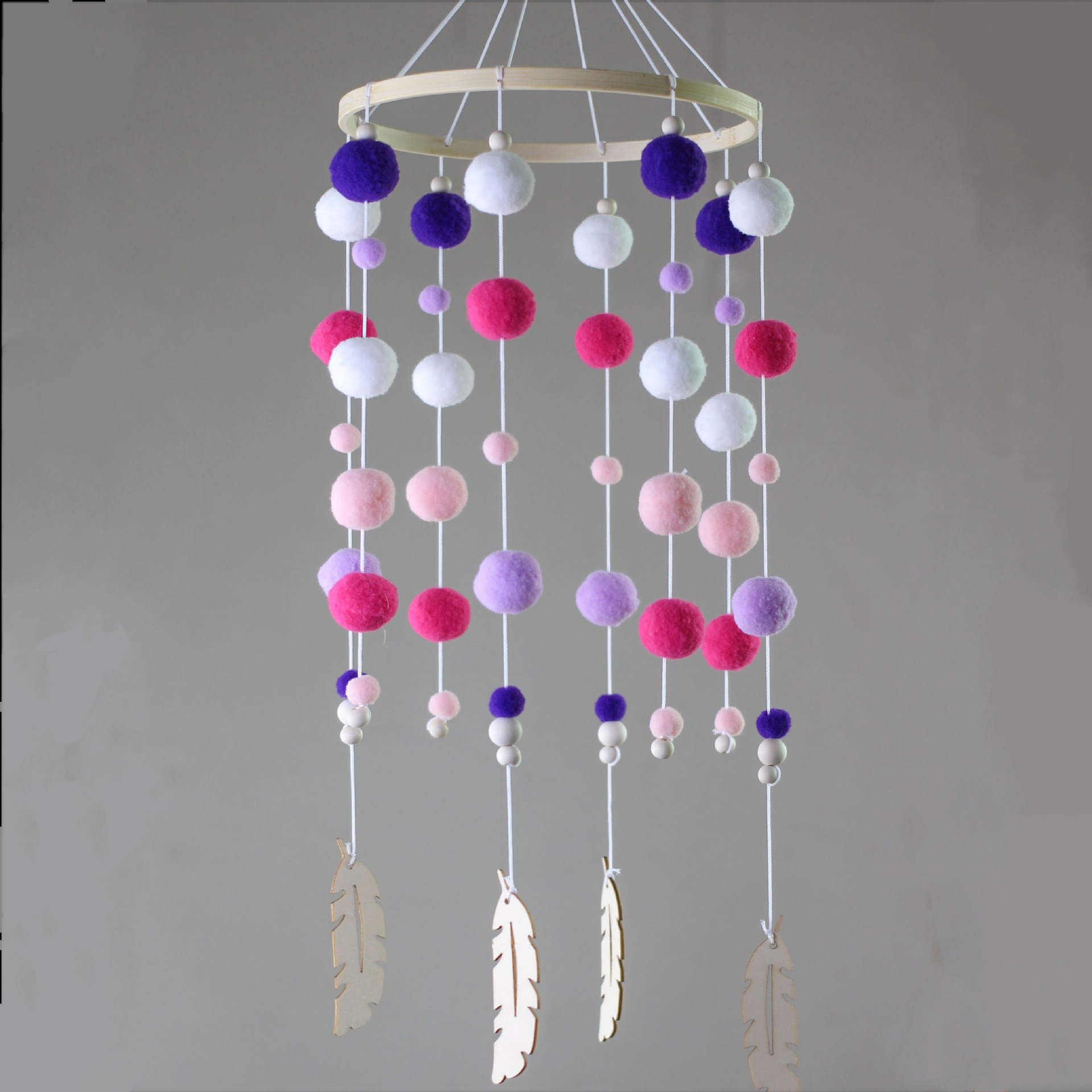 INS北欧毛球风铃挂件儿童房装饰挂饰摆件宝宝树叶风铃满月礼物