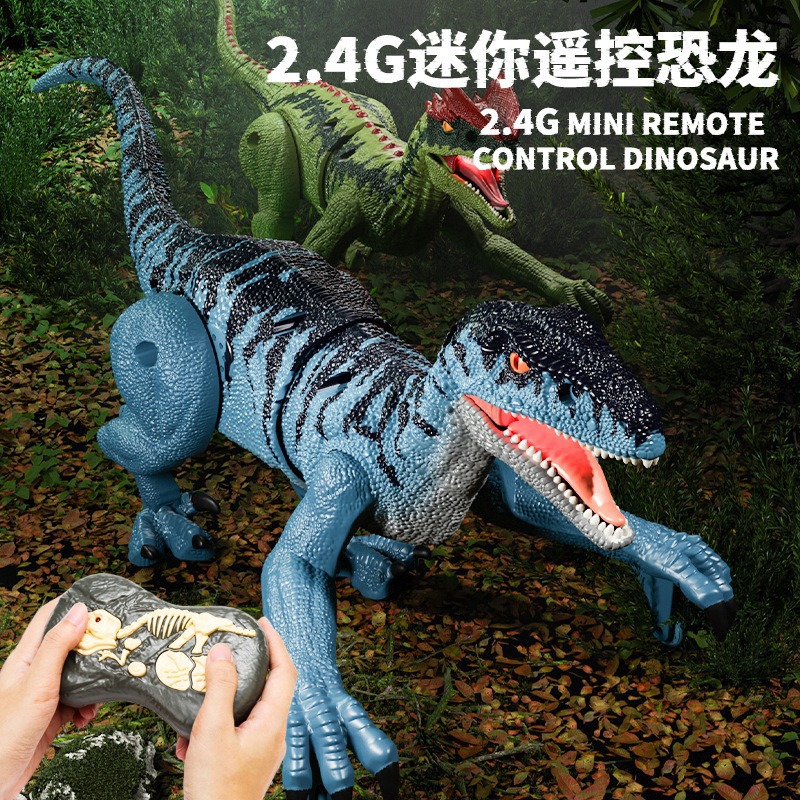 跨境儿童遥控迅猛龙霸王龙2.4G五通仿真声光电动迷你遥控恐龙玩具