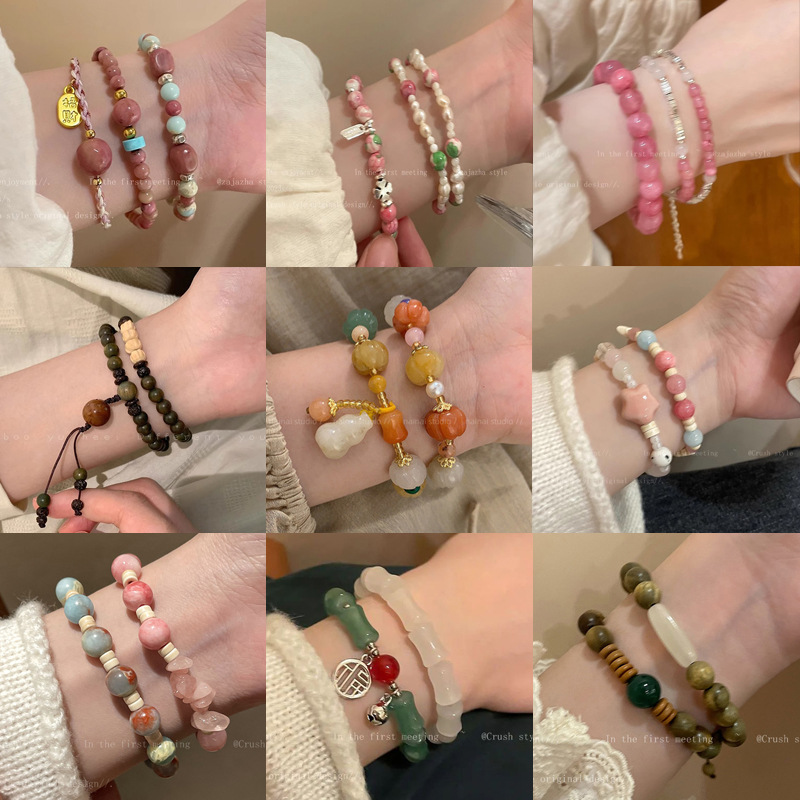 新中式爆款珍珠手链女复古高级感朱砂手串轻奢小众辣妹串珠手饰品