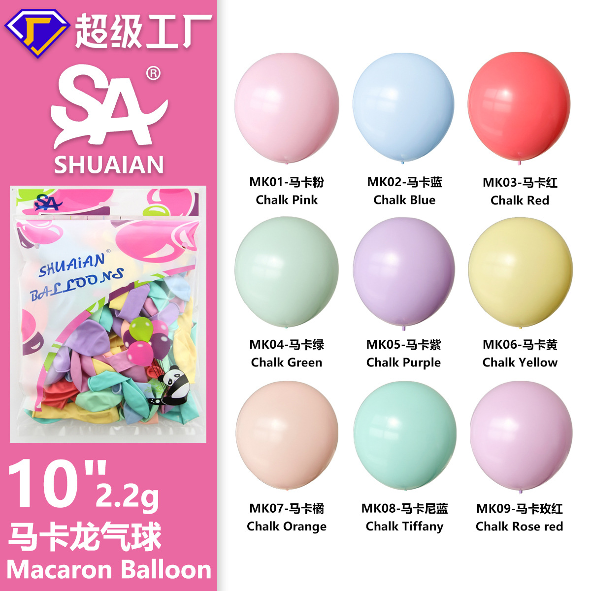 帅安气球10寸马卡龙气球糖果色七夕生日装饰婚庆婚房布置批发套装