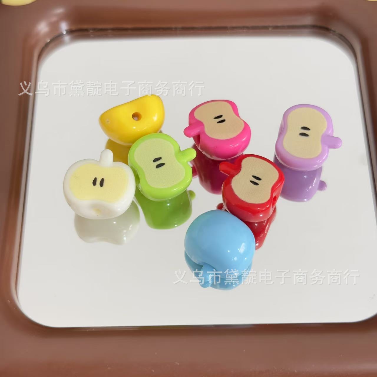 diy饰品配件 彩色印刷半颗苹果串珠儿童发饰包挂手机链服饰散珠