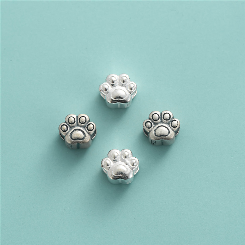 S925纯银小狗脚印隔珠散珠配件DIY手工编绳珍珠手串手链串珠饰品