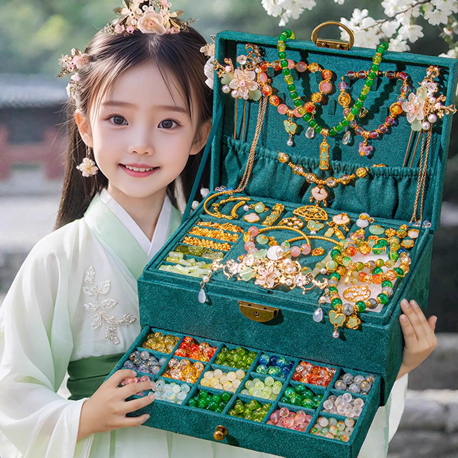 儿童古风发饰手链串珠手工diy材料玩具女孩穿珠子生日礼物礼盒
