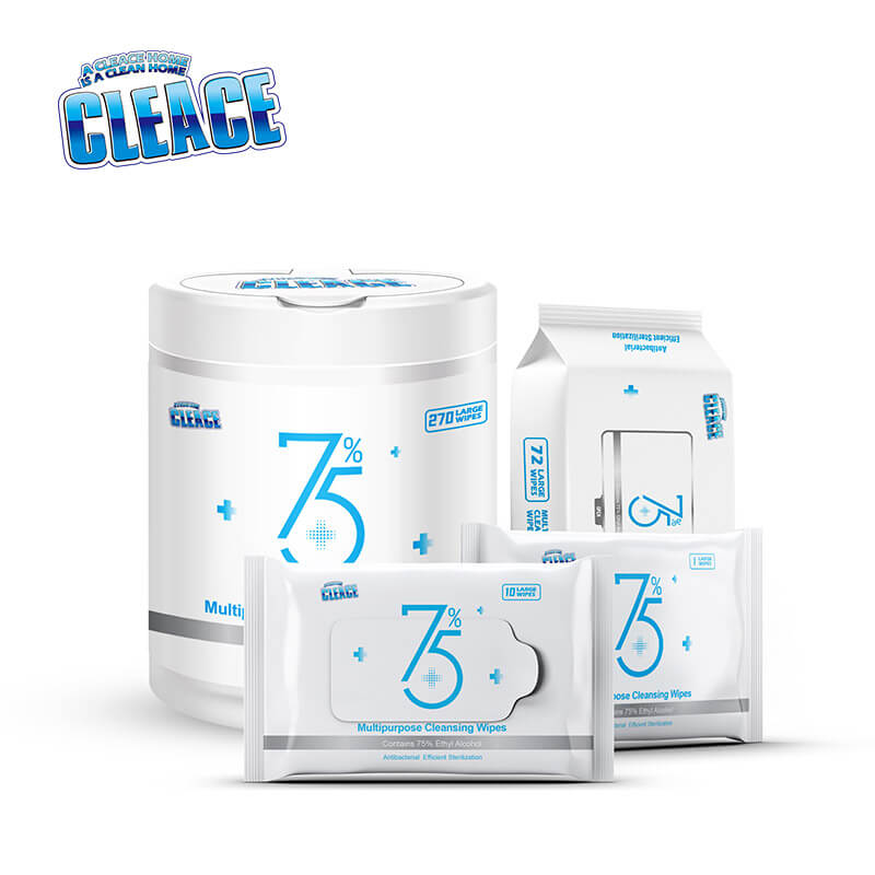 现货批发75度酒精消毒湿巾80抽大包杀菌擦手家用便携纸巾中文