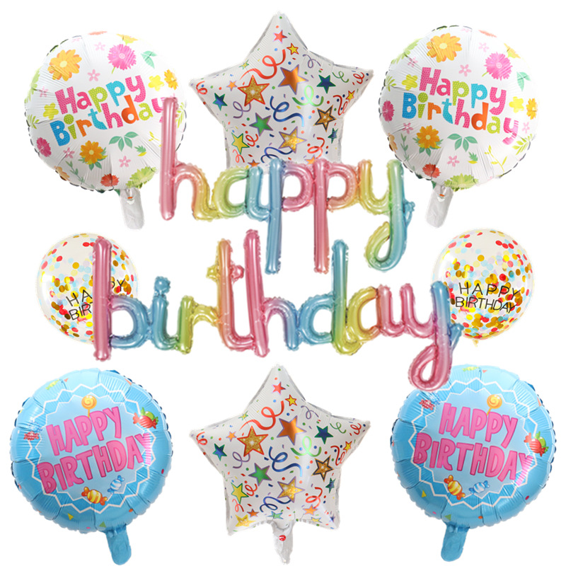 跨境专供创意生日快乐气球套装生日派对铝膜气球乳胶气球装饰装扮