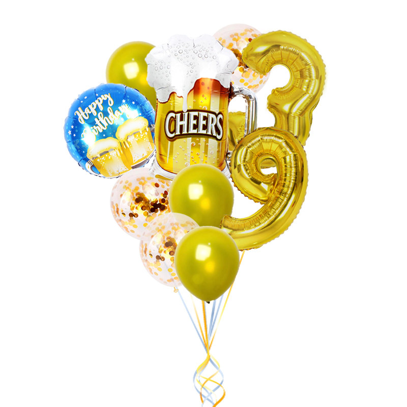 亚马逊跨境16 39 60生日派对装饰气球套装干杯啤酒杯金色数字汽球