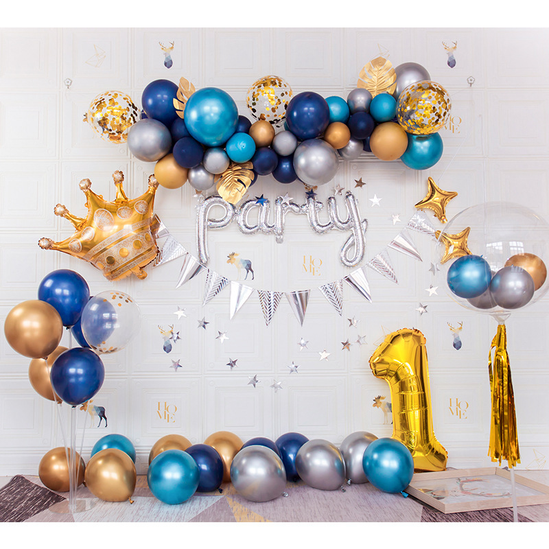 跨境儿童宝宝周岁生日PARTY布置蓝色星空主题乳胶气球套装批发