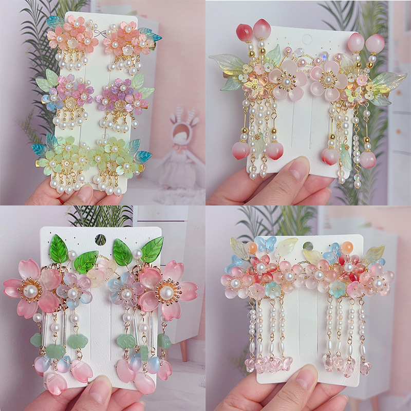 儿童汉服头饰发夹小女孩古风发卡超仙复古花朵流苏气质中国风配饰