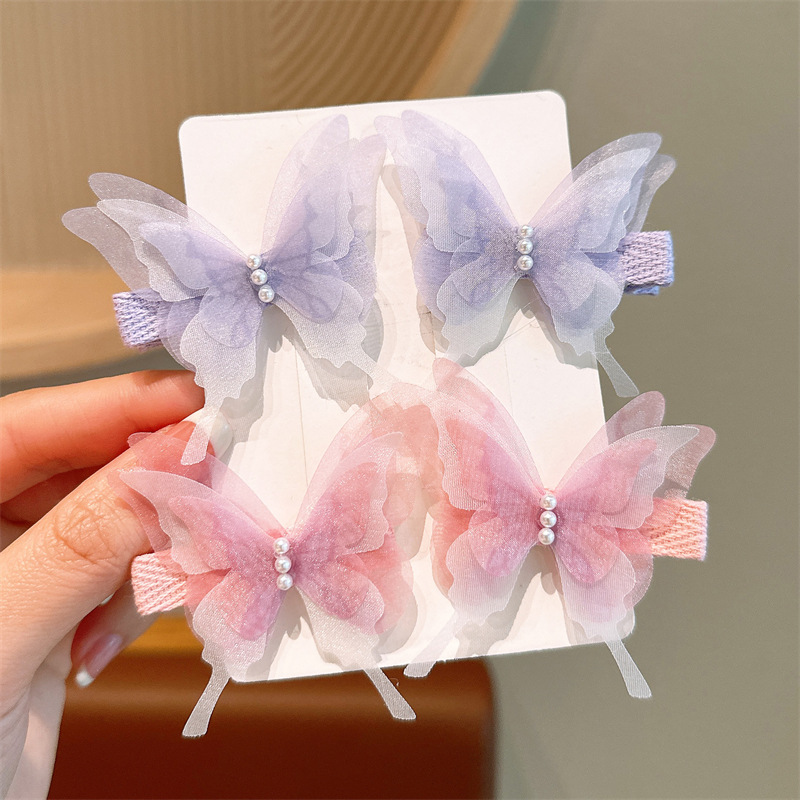 新款超仙蝴蝶发夹儿童发饰渐变凤尾蝶对夹编发卡古风汉服边夹头饰