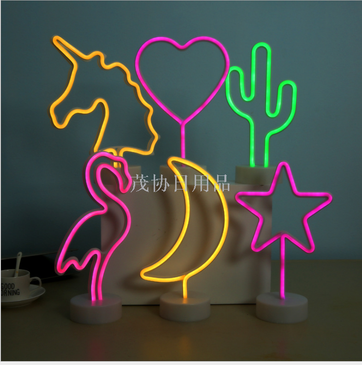 带底座动物ins霓虹管LED造型灯火烈鸟霓虹灯布置装饰灯圣诞小夜灯