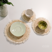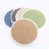 流苏边编织杯垫ins风北欧餐垫 棉麻质感餐桌隔热垫 圆形装饰垫子