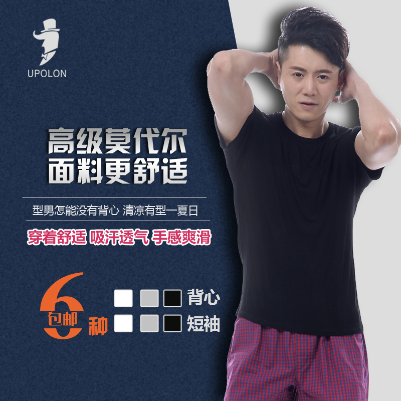 夏季男士纯棉打底背心运动大码修身健身家居背心优帛伦正品3条装