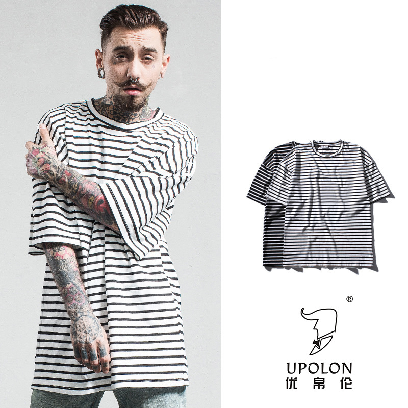 2018欧美春夏新款潮牌男装 FOG宽松版型 高街条纹纯棉男式短袖T恤