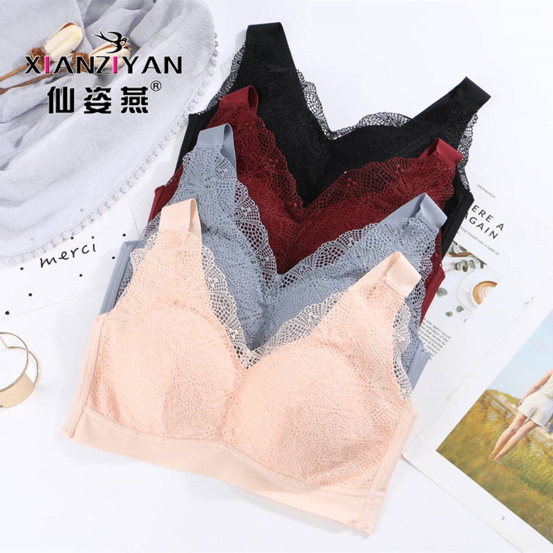 仙姿燕尚品蕾丝睡眠内衣任意裁舒适聚拢宽肩带无钢圈文胸女式无缝