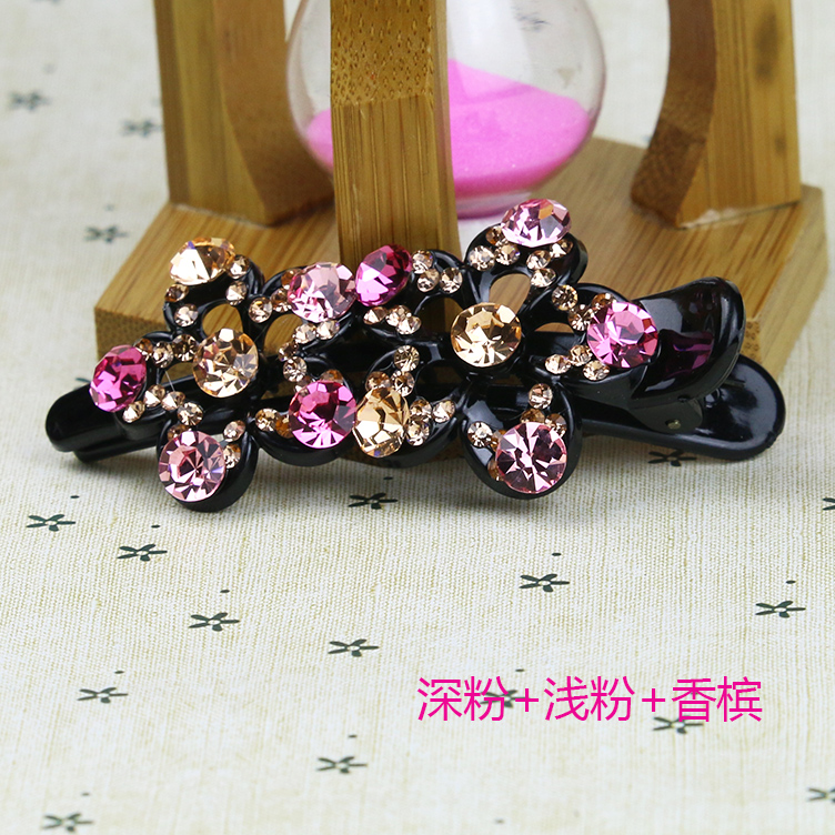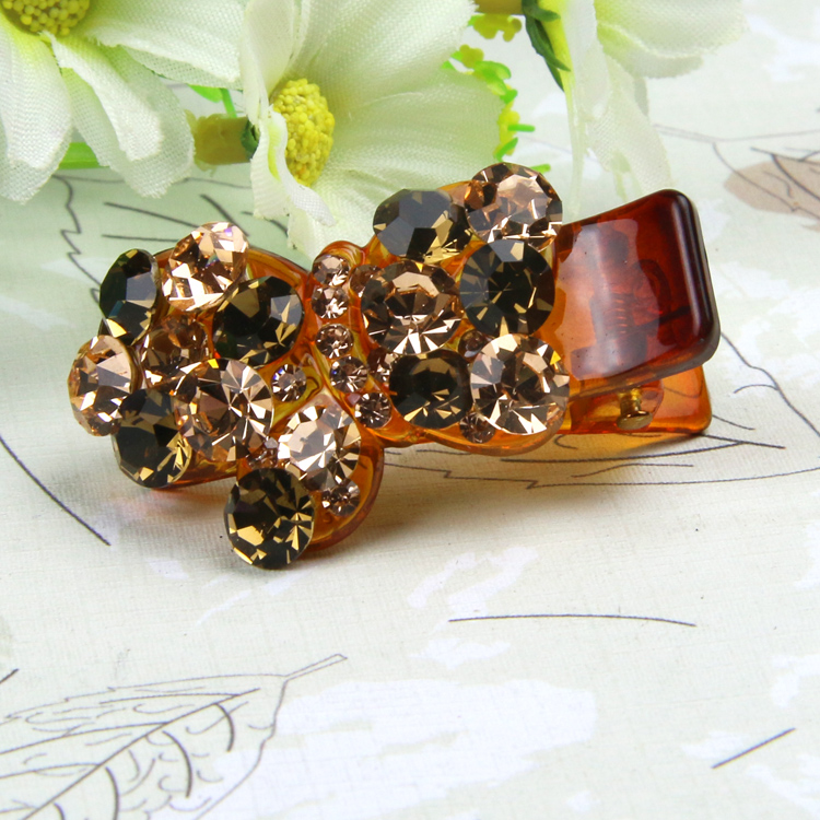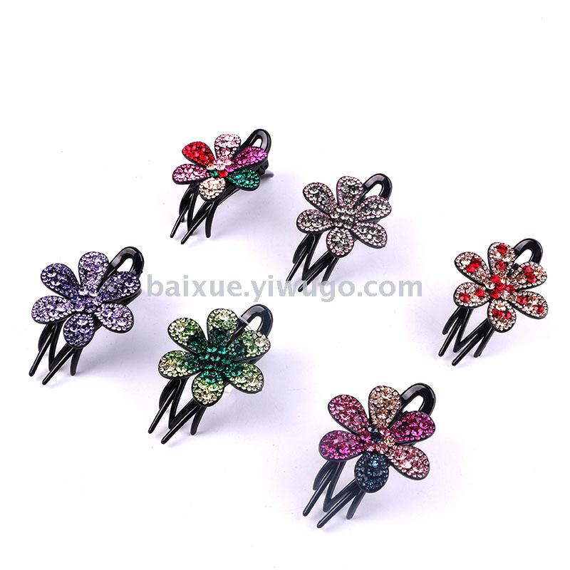 成人鸭嘴夹马尾三齿夹盘发头饰发夹插梳发梳满钻横夹花朵水钻头饰