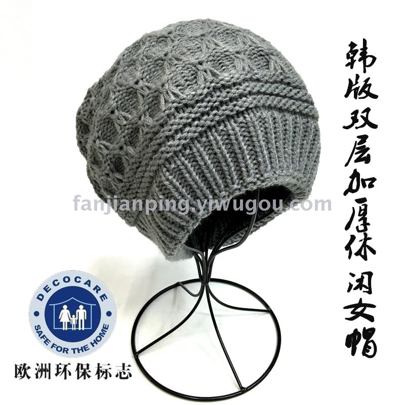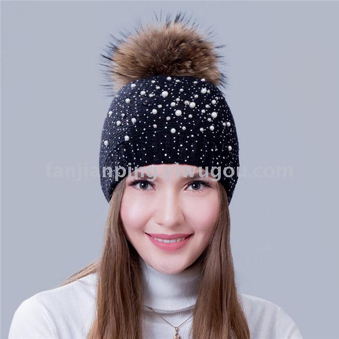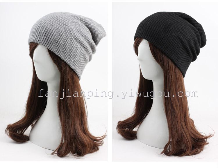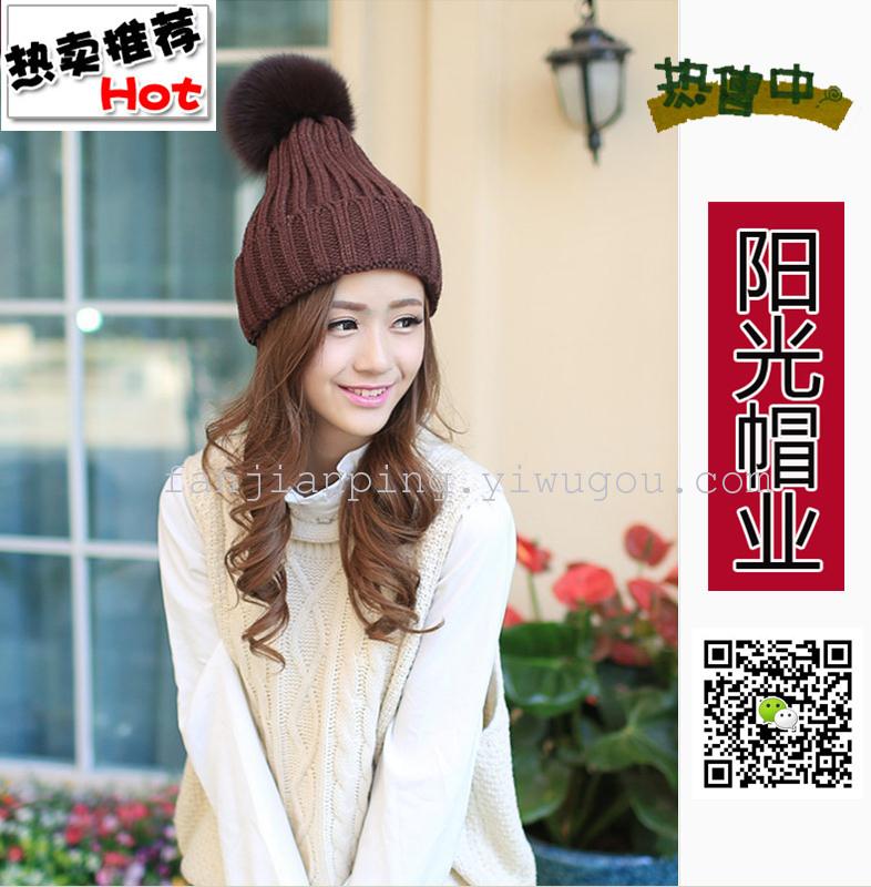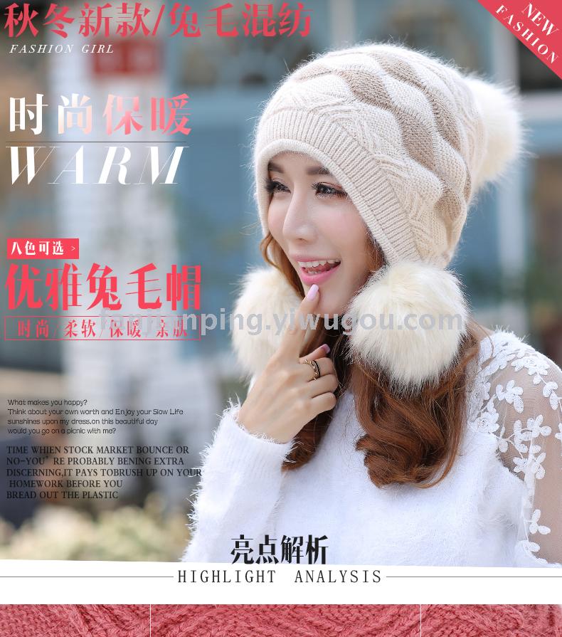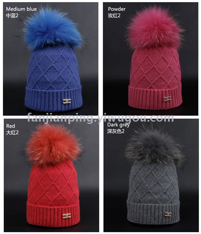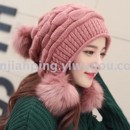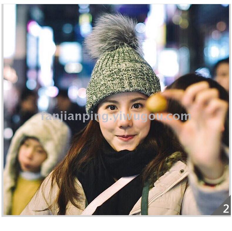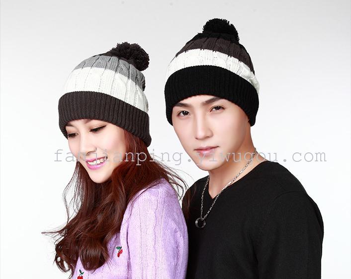 韩版女士秋冬拼色球球毛线帽 男女针织套头帽 冬季休闲情侣帽子