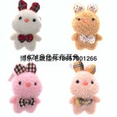 毛绒挂件喷花领结兔钥匙扣鸟熊菜抓机娃娃抖音直播亚马逊跨境工厂