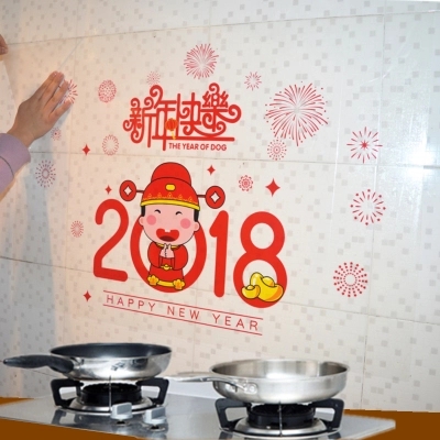 新年快乐透明自粘防油污贴纸家用灶台瓷砖墙贴厨房防水墙纸油烟贴
