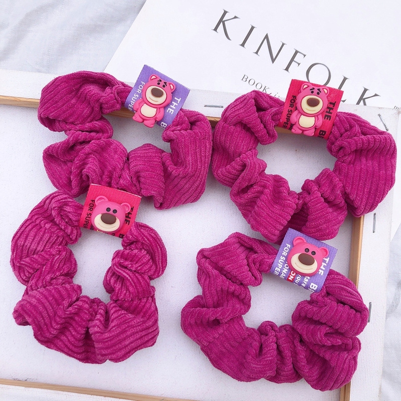 草莓熊可爱大肠发圈灯芯绒头饰韩国东大门火龙果色丸子头肥肠发绳
