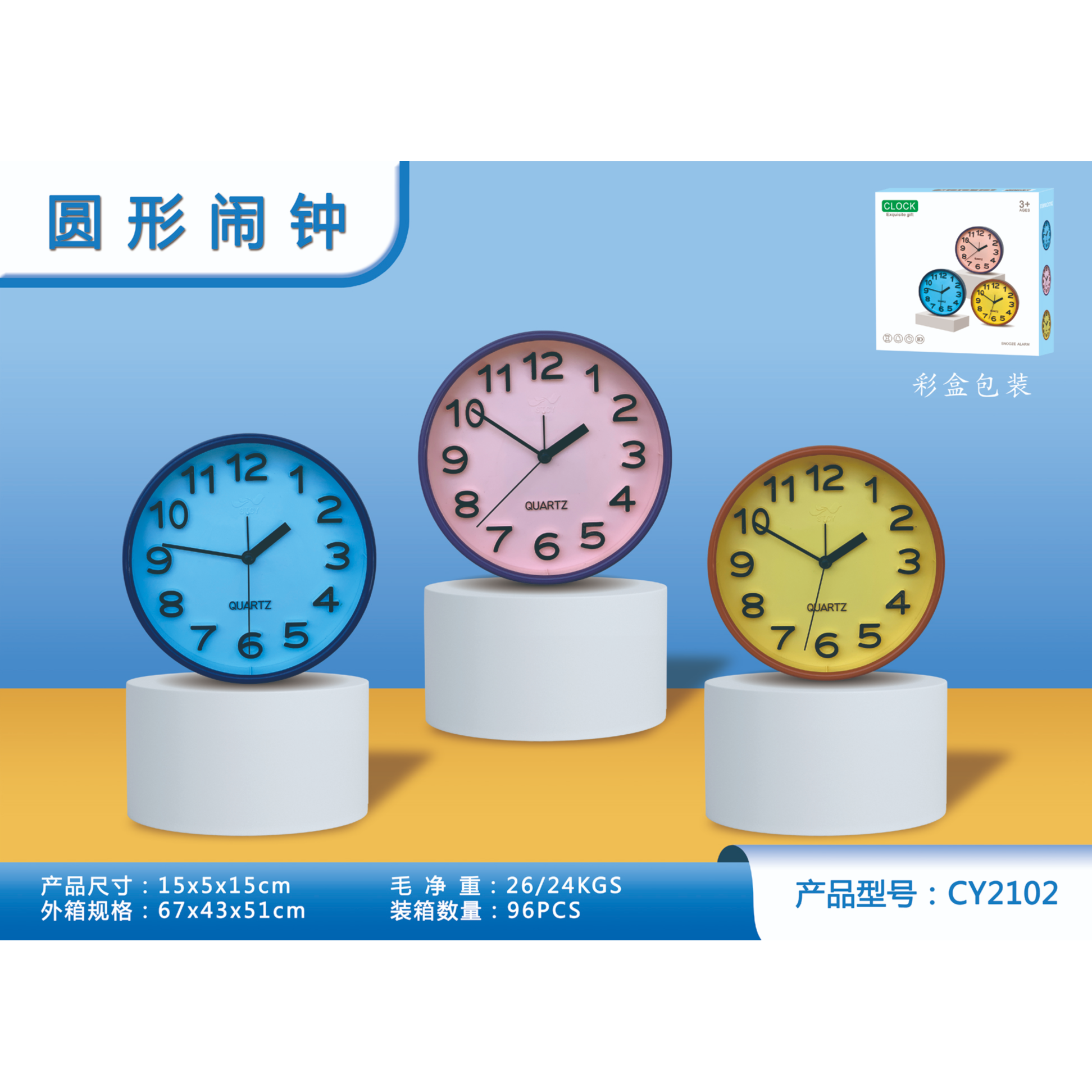 22新品厂家直销简约时尚彩色闹钟桌面小时钟学生时间管理闹钟