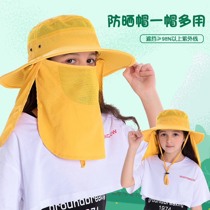 【帽隐】夏季儿童帽包脸护颈遮阳帽大帽檐披肩太阳帽女童渔夫帽