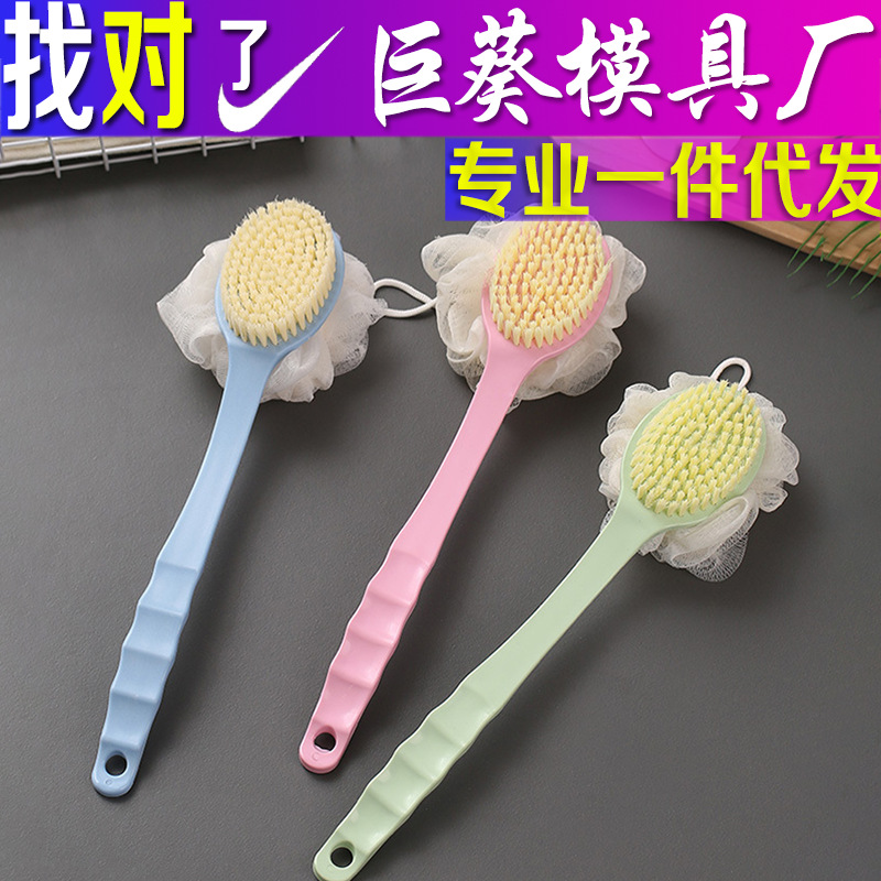 软毛按摩浴刷 长柄搓背刷 二合一沐浴刷 带浴球洗澡刷 双面搓澡刷