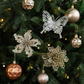 跨境新款圣诞节氛围布置圣诞树创意装饰镂空蝴蝶插花粘粉亮片现货