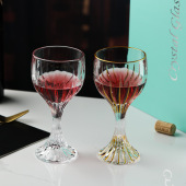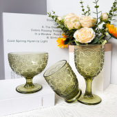 欧式复古浮雕红酒杯加厚玻璃杯婚礼高脚杯彩色轻奢果汁玻璃杯批发