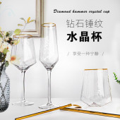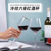 水晶红酒杯冰纹六棱红酒杯勃艮第红酒杯家用酒杯厂家批发礼盒酒具