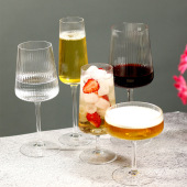 中古风轻奢原色料竖纹高脚杯氛围感红酒杯酒店级高级感香槟杯批发