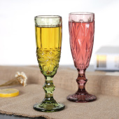 欧式浮雕彩色玻璃香槟杯鸡尾酒杯宴会杯果汁玻璃杯婚礼派对高脚杯