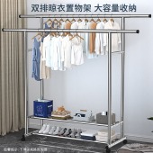 落地式挂衣架卧室衣帽架双排架移动家用阳台室内简易晾衣架挂衣架