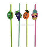 卡通创意PETG造型吸管直管彩色软胶图案派对聚会用品可重复使用