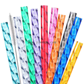炫彩水晶旋钻石花纹吸管PETG食品级材质可重复使用彩色直管批发