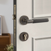 黄铜滚花门锁古铜木门锁 磁吸静音黄铜门锁房门锁门把手跨境货源