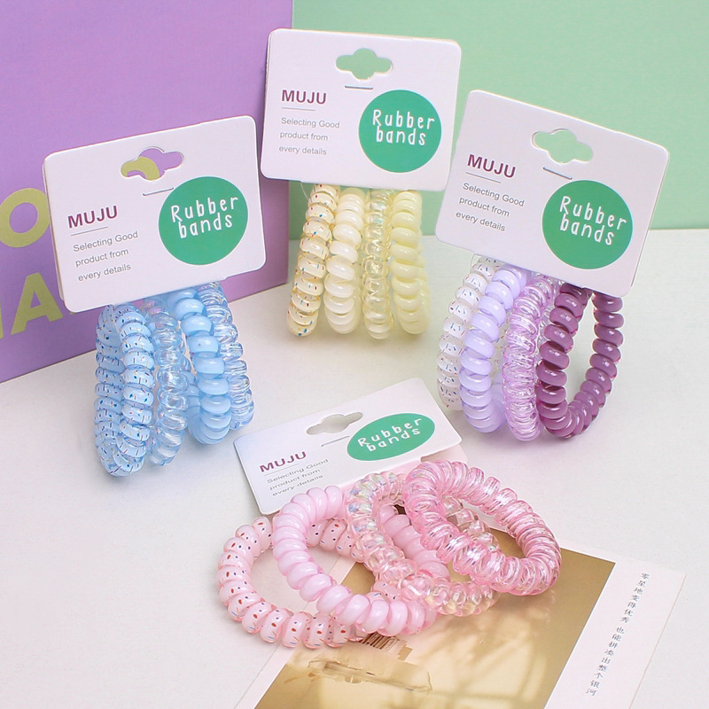 高级感葡萄椰椰波点电话线发圈精美4条套装发绳清新百搭马尾头绳
