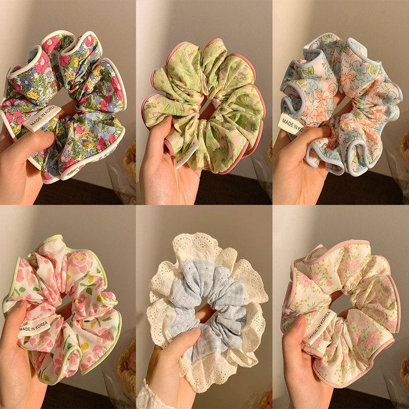森系仙气甜美碎花大肠圈蕾丝发圈2024年新款扎丸子头发饰气质头绳
