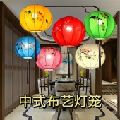 中式弹力布手绘灯笼异形圆形灯笼创意古风布艺景区餐厅装饰用灯笼