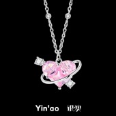 S925纯银粉色心形项链女小众吊坠七夕情人节礼物2025新品送女朋友