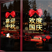 中秋节装饰玻璃门贴节日布置静电窗花服装店铺橱窗装扮国庆节窗贴